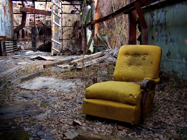 I was really drawn to the pic with the yellow recliner…I looked at that one for a long time…I like how you wrote about finding beauty in something ravished and abused takes an open heart. Mr. John, I just like you more and more. I think you may have inspired me to grab my camera – they are bull dozing away down here…I’m too scared to think it may be progress – they’ve whispered about ‘revamping’ this area before…but there are some really cool old buildings around here – maybe I should take a snap before they are all gone….