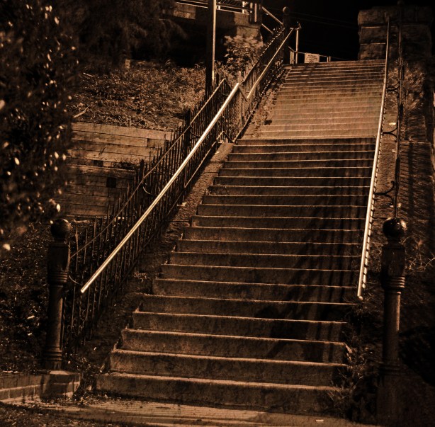 She said meet her at the stairs. Meet after the bars closed, after the last street wanderers slipped away into the night.