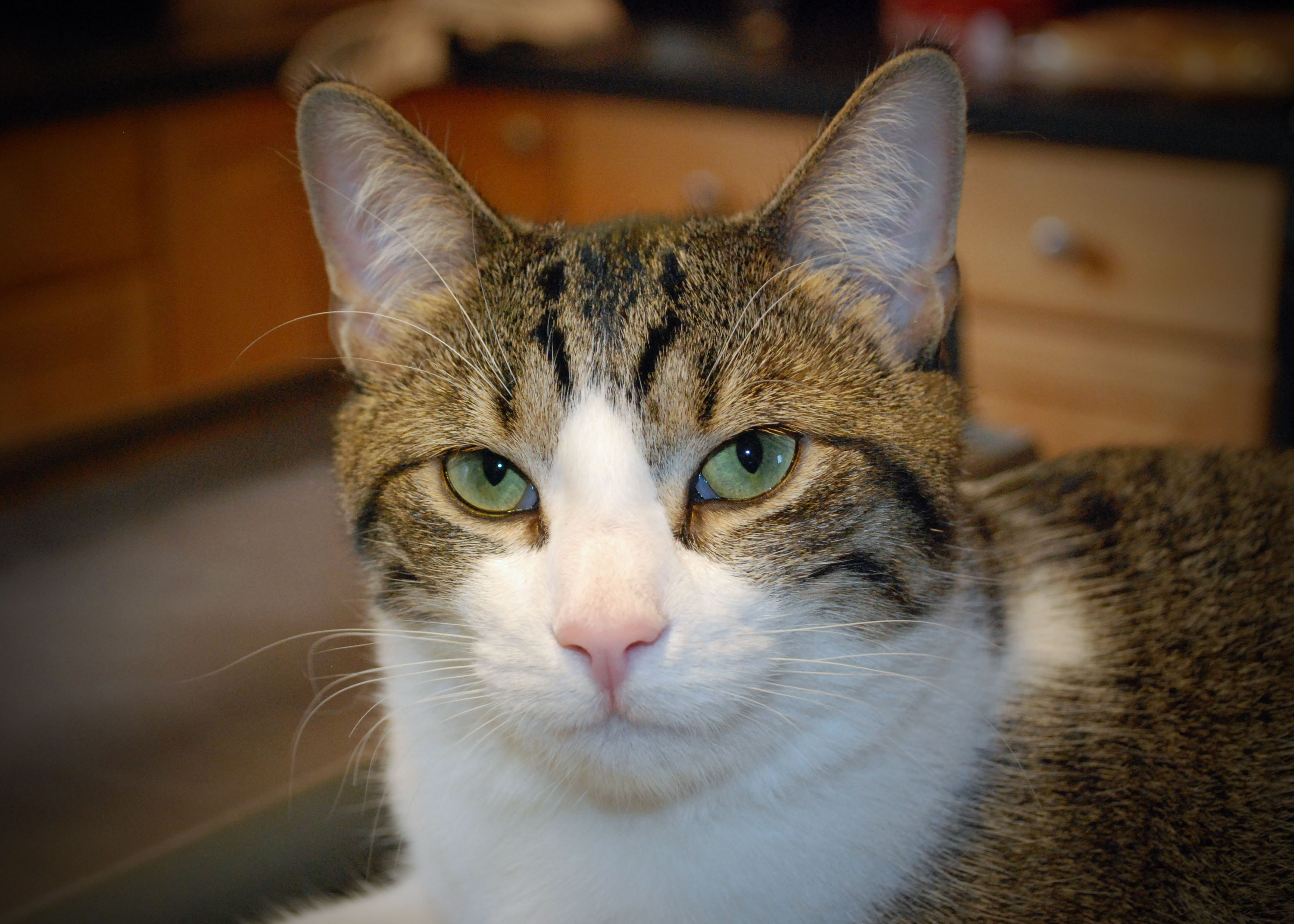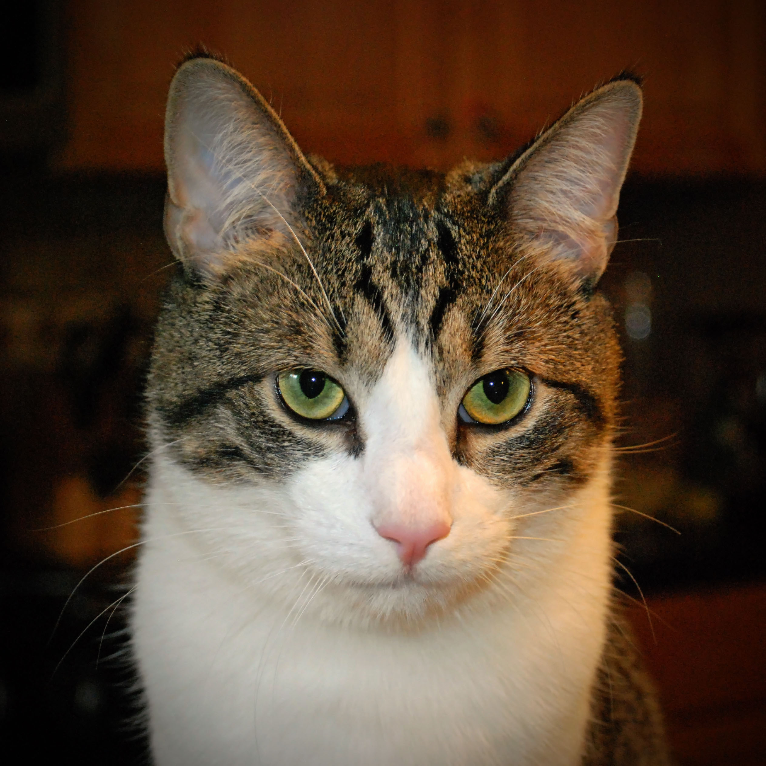 Boomer doesn’t even blink when you’d expect, when you’d think it was physically impossible for him to keep his eyes open. For example, when having his photo taken using a flash camera. The flash pops and his eyes remain wide open. It’s like he’s impervious to the bright burst of light which besieged his irises. I’ve never seen that in a cat. It’s freakin’ disconcerting. Heck, most humans I know blink at a camera’s flash, even when they’re aware it’s coming. Not Boomer. He simply continues to stare as if nothing unusual is going on, entranced by whatever is running through his distinctly small cat brain. To him a camera’s flash must seem like just another moment on the catwalk.Boomer lives with my sister and her family which, I suppose, makes me his two-legged uncle. He has a brother (Kimo) and a sister (Peanut). Actually, they are step-siblings since they are not blood related. Boomer doesn’t seem to care. Apparently he’s not into labels. I like that about him.