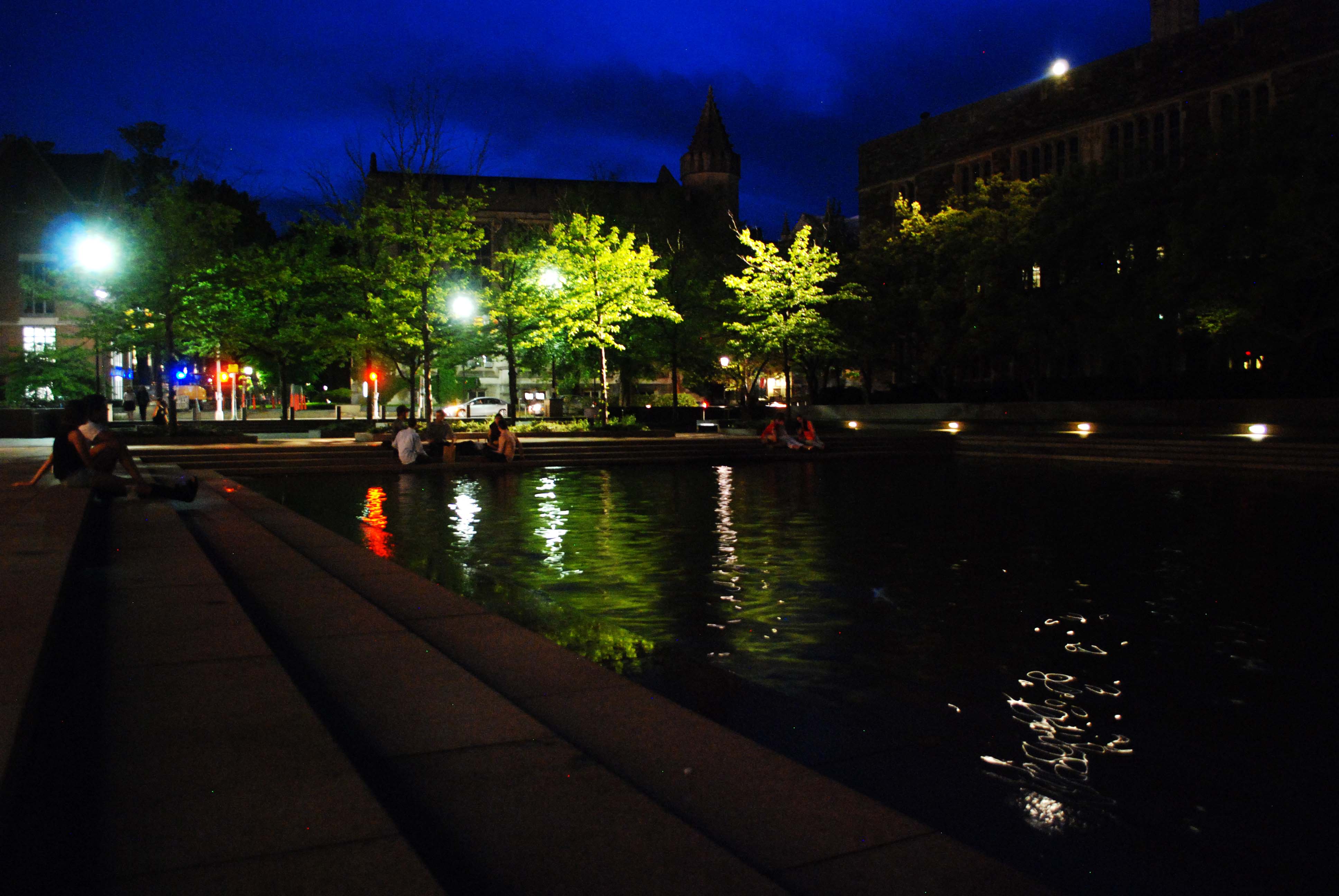 6. Tripod, schmipod! (I don’t think schmipod is a real word) Who needs a tripod? Not you! Those are great shots! I especially like the color saturation in the reflecting pool photograph. The Witherspoon Hall shot is my second favorite. Shooting in low light is so much fun!